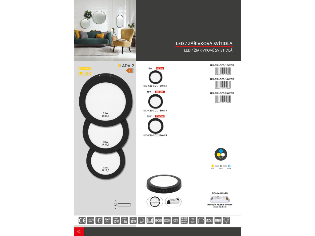 | Kód výrobce: | LED-CSL-CCT/12W/CR |