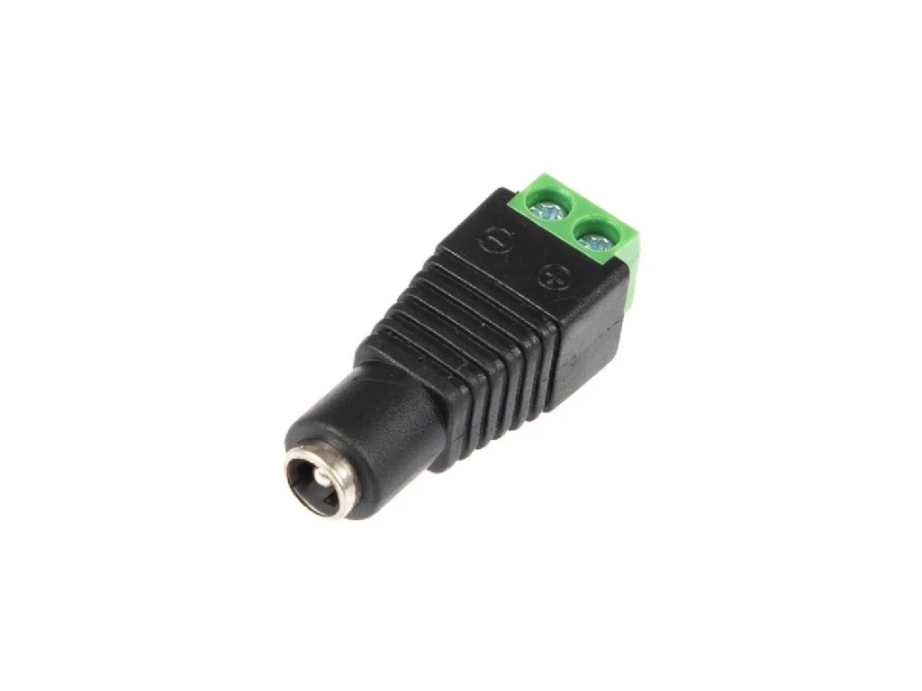 Spojky / konektory, Spojky pro LED pásky, Konektory LED pásek, Svorky a svorkovniceZásuvka napájecí se svorkovnicí 2,1 x 5,5 mm. Maximální zatížení je 5A, maximální pracovní napětí je 50V=/~.