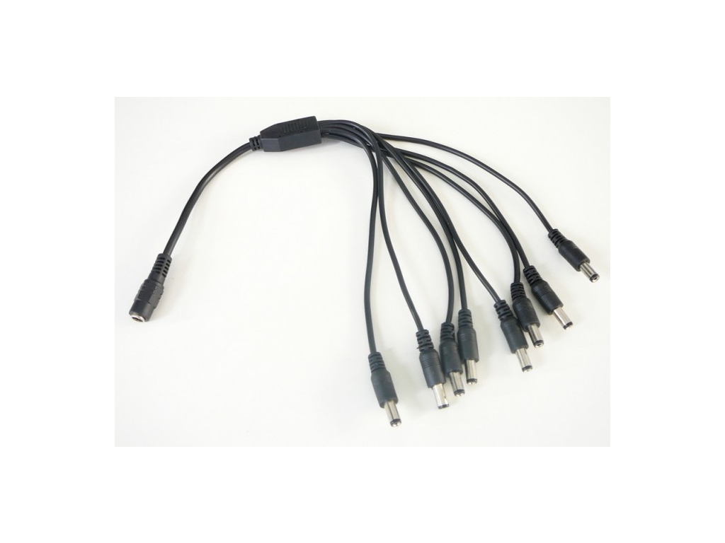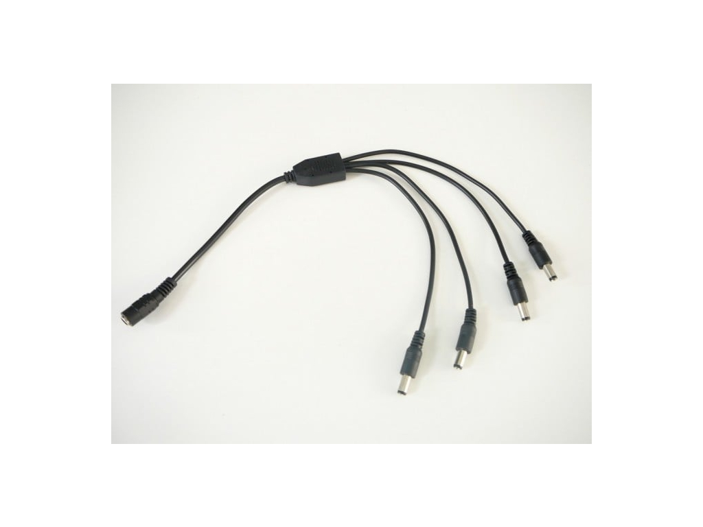 DC rozbočovač s 2, 4, 5 nebo 8 výstupy. Rozměr 2,1/5,5mm. Délka 40cm. Maximální zatížení 5A na vstupu, 3A na jednotlivých výstupech rozbočovače.