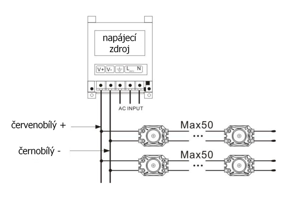 | Maximální délka zapojení | 50ks | |