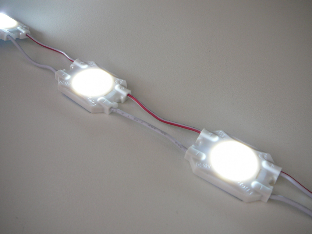 Světelné LED modulyLED modul 0,72W 3725-170-12V speciálně pro úzké bannery od 3cm, díky speciálné čočce je LED světlo rozptýlenější a nedělá body jako běžné moduly.