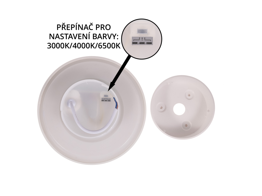 | Dodavatel data**: | </br><div class="categories-content"> <h3 class="categories-title">Kategorie produktu</h3><a href="/led-nastenna-svitidla" title="Nástěnná svítidla">Nástěnná svítidla</a>, <a href="/vnitrni-osvetleni" title="Vnitřní osvětlení">Vnitřní osvětlení</a>, <a href="/moderni-nastenna-svitidla" title="Moderní nástěnná svítidla">Moderní nástěnná svítidla</a></div><div id="text_3_2020"><p>Bílé nepřímé nástěnné CCT LED svítidlo s krytím IP65 napájené síťovým napětím 220-240 VAC. Směr světla dopadá na fasádu a vytváří kolem svítidla světelný lem. Díky nepřímému osvětlení můžete vytvořit příjemnou atmosféru ve Vašem domově, případně vytvořit zajímavé osvětlení na fasádě Vašeho domu. Světla můžete i kombinovat v různých velikostech a počtech svítidel EKLIPSO a vytvářet si zajímavé světelné obrazce na Vaší stěně. Svítidlo je tedy vhodné použít jako dekorační nebo orientační osvětlení jak v exteriéru kvůli krytí IP65, tak v interiéru. Pod krytem svítidla je umístěn <strong>přepínač pro nastavení teploty světla (CCT)</strong>, kde můžete vybírat mezi<strong> 3 barvami světla</strong>:</p> <ul> <li>3000K teplá bílá</li> <li>4000K denní bílá</li> <li>6500K studená bílá</li> </ul> <p> </p> <p>Svítidlo nabízíme ve <strong>4 variantách dle příkonu</strong>:</p> <ul> <li>9W - průměr svítidla 122 mm</li> <li>12W - průměr svítidla 182 mm</li> <li>15W - průměr svítidla 222 mm</li> <li>18W - průměr svítidla 252 mm</li> </ul> <p> </p> <table> <tbody> <tr> <td colspan= "6 "> <h3><strong>Specifikace LED svítidla</strong></h3> </td> </tr> <tr> <td><strong>Barva svítidla</strong></td> <td colspan= "5 ">Bílá</td> </tr> <tr> <td><strong>Materiál svítidla</strong></td> <td colspan= "5 ">Plast</td> </tr> <tr> <td><strong>Vstupní napětí</strong></td> <td colspan= "5 ">220-240V AC</td> </tr> <tr> <td><strong>Barva světla</strong></td> <td colspan= "5 ">3000-6500K</td> </tr> <tr> <td><strong>Příkon</strong></td> <td>9W</td> <td>12W</td> <td>15W</td> <td colspan= "2 ">18W</td> </tr> <tr> <td><strong>Světelný tok</strong></td> <td>900lm</td> <td>1200lm</td> <td>1500lm</td> <td>1800lm</td> </tr> <tr> <td><strong>Úhel svitu</strong></td> <td colspan= "5 ">120°</td> </tr> <tr> <td><strong>CRI</strong></td> <td colspan= "5 ">>80</td> </tr> <tr> <td><strong>Krytí</strong></td> <td colspan= "5 ">IP65</td> </tr> <tr> <td><strong>Stmívatelné</strong></td> <td colspan= "5 ">Ne</td> </tr> <tr> <td><strong>Životnost</strong></td> <td colspan= "5 ">25000h</td> </tr> <tr> <td><strong>Rozměry</strong></td> <td colspan= "5 ">Viz obrázek</td> </tr> </tbody> </table></div> |