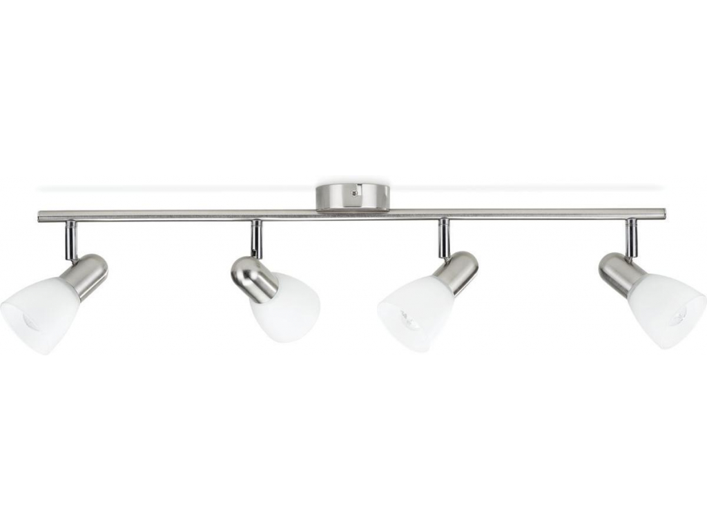 klasický vzhled čtyřbodového svítidla s kvalitní povrchovou úpravou v matném nerezu, satinovaným sklem použitých pro difuzory. Hlavice jsou směrovatelné, zdroje nejsou součástí balení, my doporučujeme použít některou z LED žárovek Philips s paticí E14.- napětí 220-240V