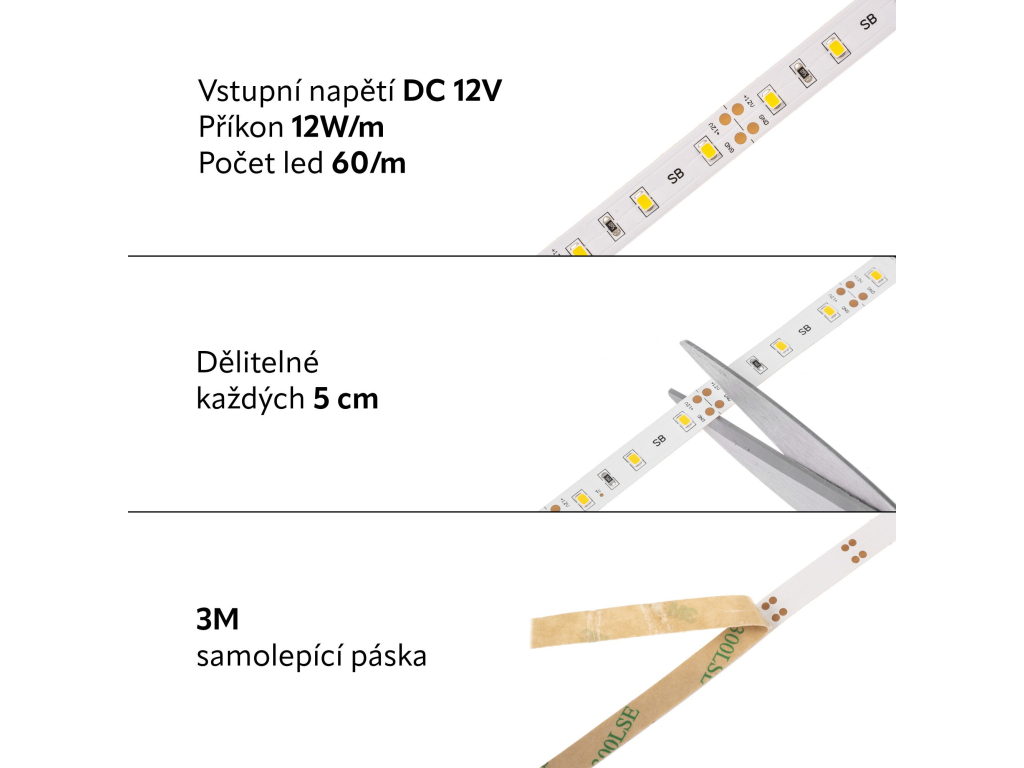| Cena zahrnuje: | LED pásek 4,8W/m vnitřní denní bílá 24V |