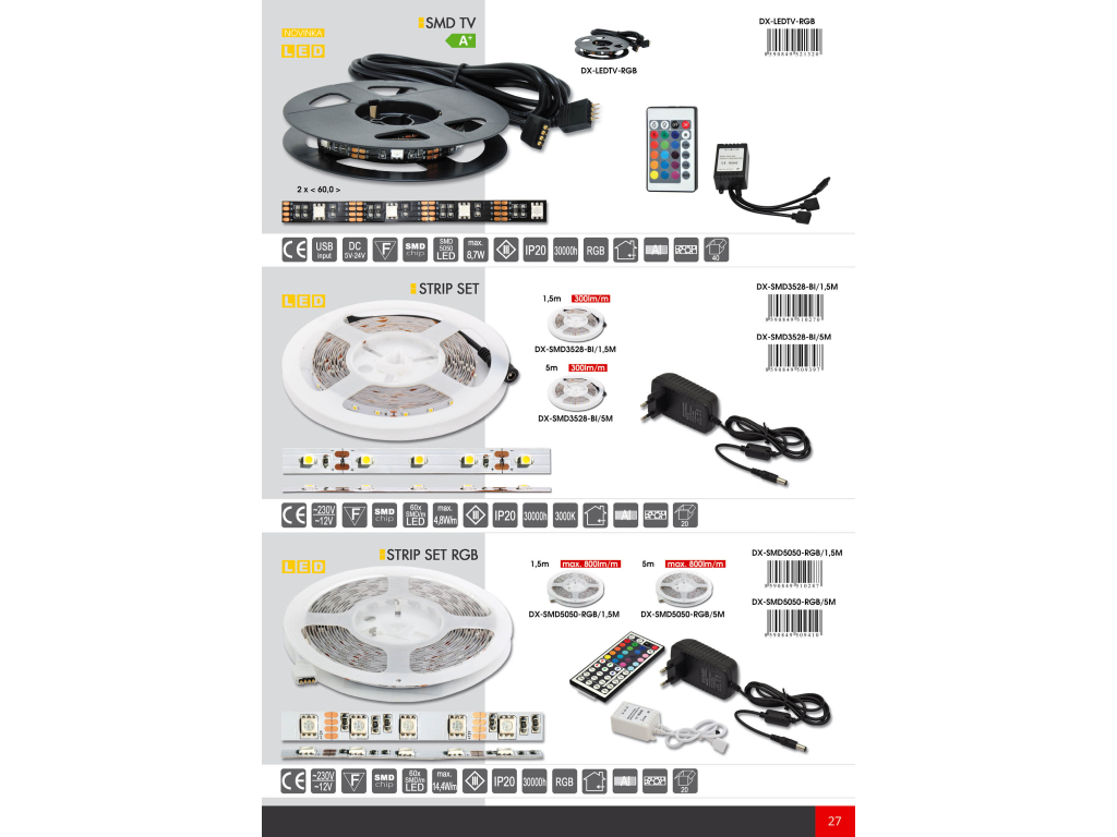 | Cena zahrnuje: | LED set vč.adpt.,60xSMD/m,5m,4,8W/m,IP20,4000K |