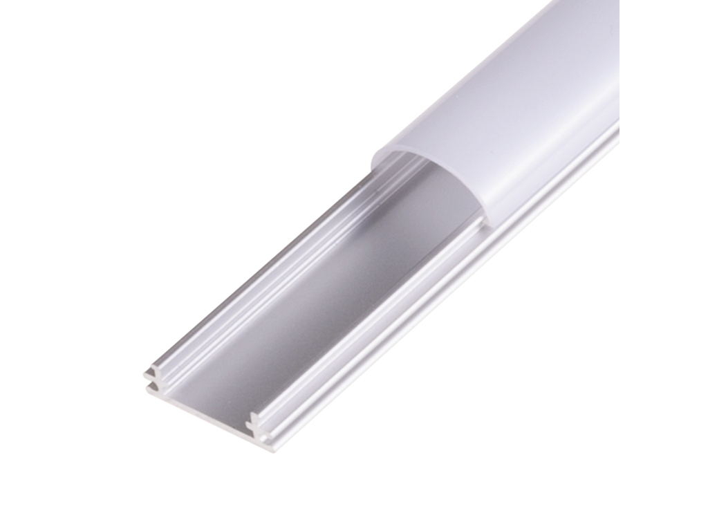 Lišty / profily / difuzoryNástěnný hliníkový profil (lišta) pro LED pásky s povrchovou eloxovanou úpravou. Kryt a koncovky nejsou součástí profilu a je nutné je objednat zvlášť. Předností tohoto profilu je díky tvaru difusoru nasvícení v úhlu až 180°. Tento profily se nejvíce používají k montáži do kuchyní, nábytku nebo na místa, kde chcete, aby váš LED pásek získal nový rozměr a design. Zároveň slouží jako chladič LED pásku. Tento profil doporučuje maximálně pro LED pásky o výkonu 12W/metr. Výhoda tohoto profilu je možnost nacvaknutí plastové krytky (difusoru) přímo z čelní strany profilu. Difusory jsou vyrobeny z kvalitního UV odolného polykarbonátu, který postupem času nežloutne, měkčený, nepraská.
