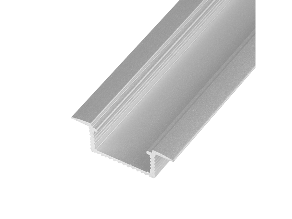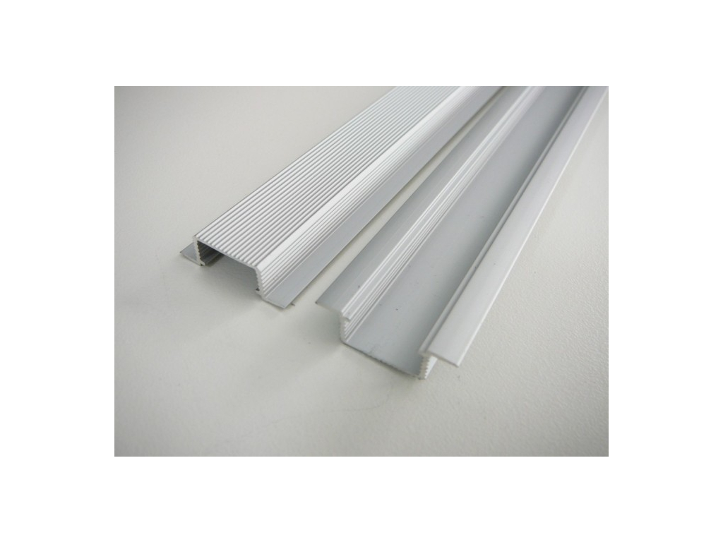 Vestavný hliníkový profil (lišta) pro LED pásky. Profil nabízíme s povrchovou eloxovanou úpravou. Profil doporučuje maximálně pro 1 LED pásek o výkonu 24W/m. Při montáži profilu je nutné počítat s tím, že tento profil je vestavný (vkládá se do vyfrézovaných drážek, límec profilu překryje okraje). Tyto profily se nejvíce používají k montáži do kuchyní, nábytku, sádrokartonů nebo na místa, kde chcete, aby váš LED pásek získal nový rozměr a vzhled. Profil zároveň slouží jako chladič LED pásku. Výhoda tohoto profilu je možnost nacvaknutí plastové krytky (difusoru) přímo z čelní strany profilu. Difusory jsou vyrobeny z kvalitního UV odolného polykarbonátu, který postupem času nežloutne, měkčený, nepraská.
