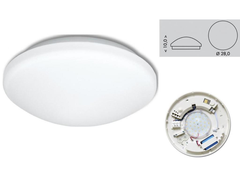 Moderní LED svítidlo s výkonem 18W a světelným tokem 1480lm je vhodné pro každou místnost v domě. Jeho bílá barva a elegantní design se hodí do jakéhokoliv interiéru. IP44 ochrana zajišťuje odolnost vůči vlhkosti, což je ideální i pro koupelny.