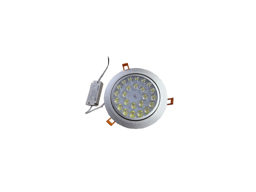 LED bodové svítidlo 24x 1W. Barva světla studená bílá. Nahradí 200W žárovku. LED svítidlo je osazeno vysoce kvalitními čipy, které se nezahřívají a mají okamžitý náběh svítivosti. Střed svítidla je možné vyklápět až v rozsahu 30°. Vestavné bodové svítidlo je vhodné k umístění do sádrokartonu. Balení obsahuje napájecí zdroj a pružiny pro vsazení.