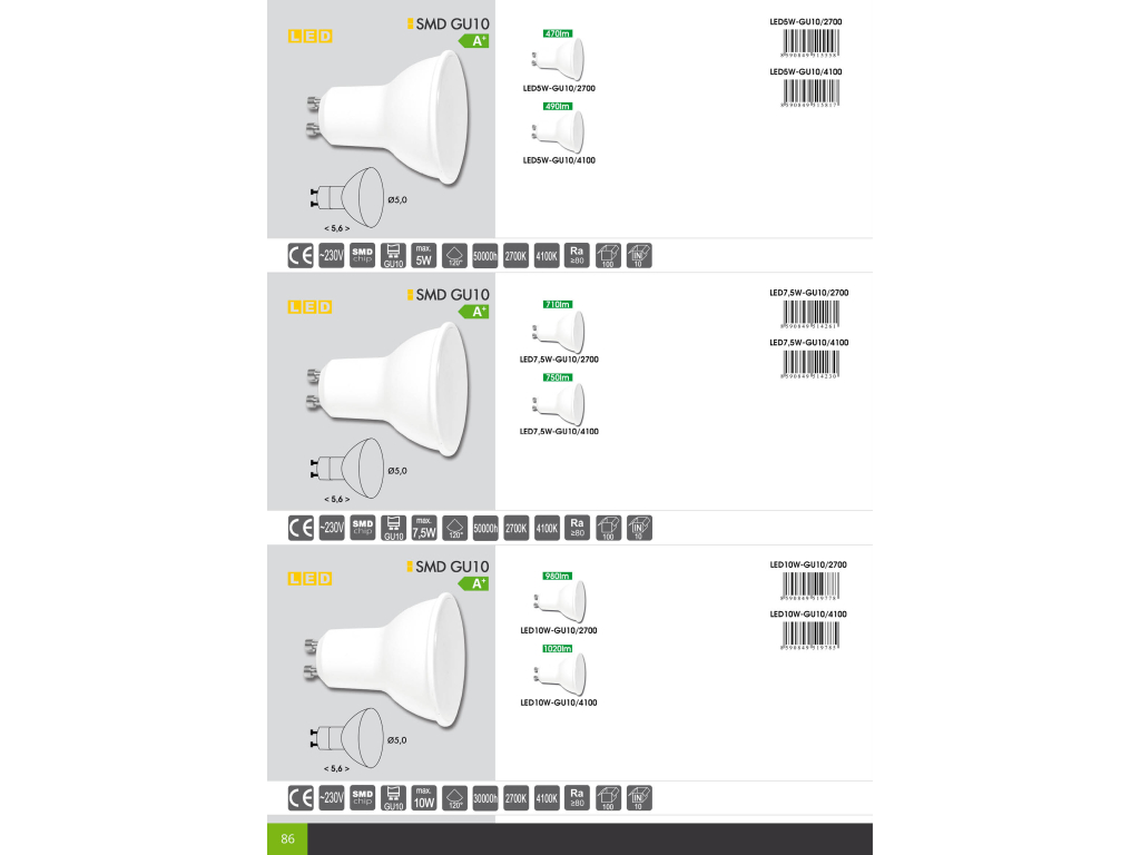 | Kód výrobce: | LED5W-GU10/4100 |