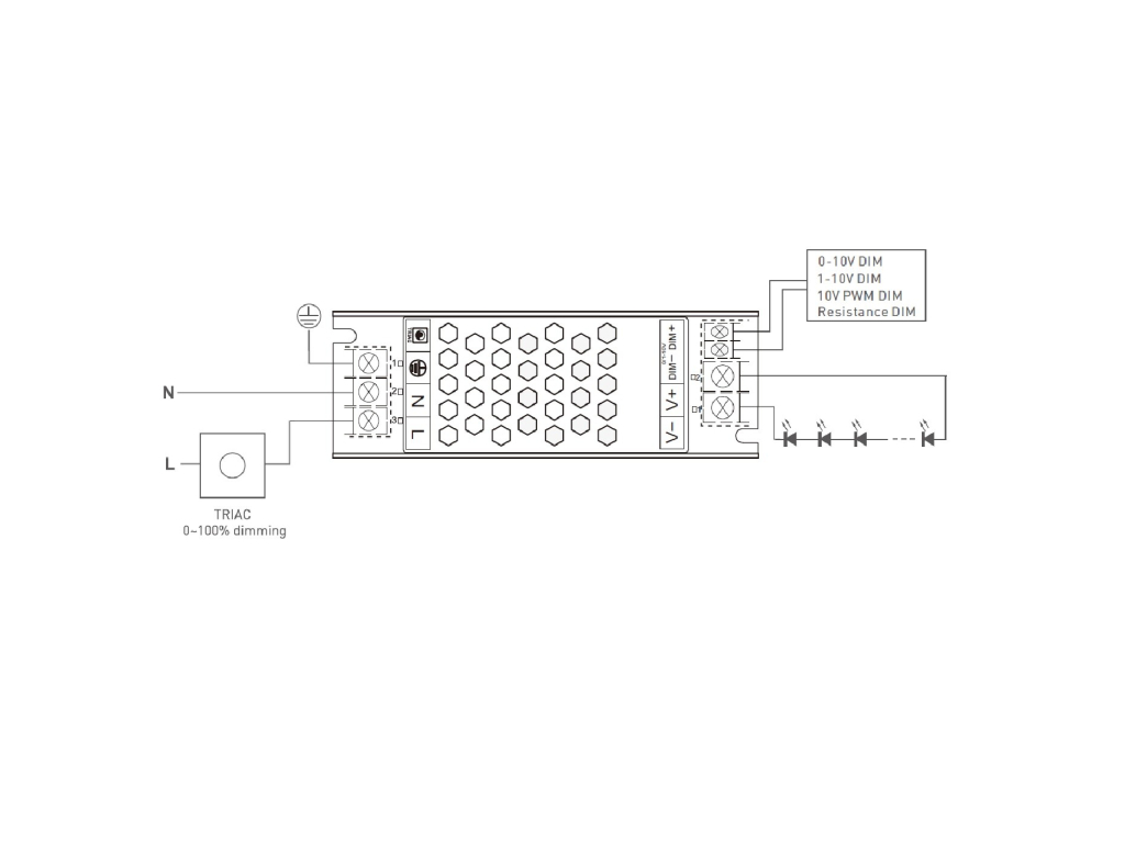 Zdroje řady DIM20 lze stmívat 5 způsoby: