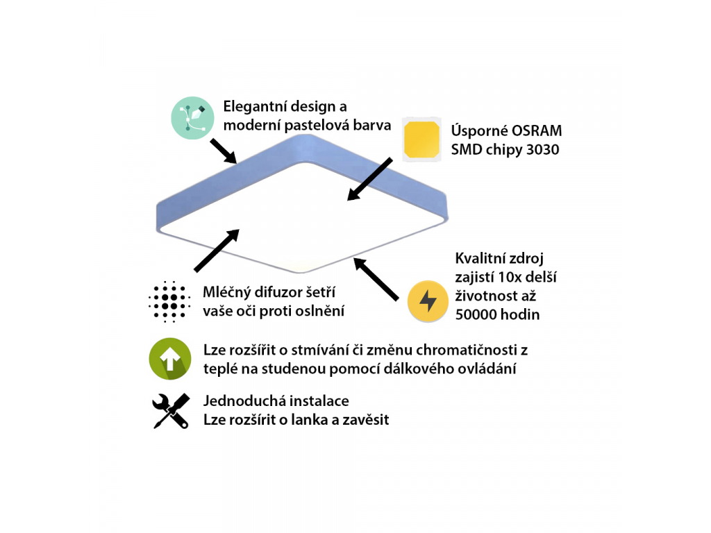 Cena zahrnuje: Modrý designový LED panel 400x400mm 24W teplá bílá