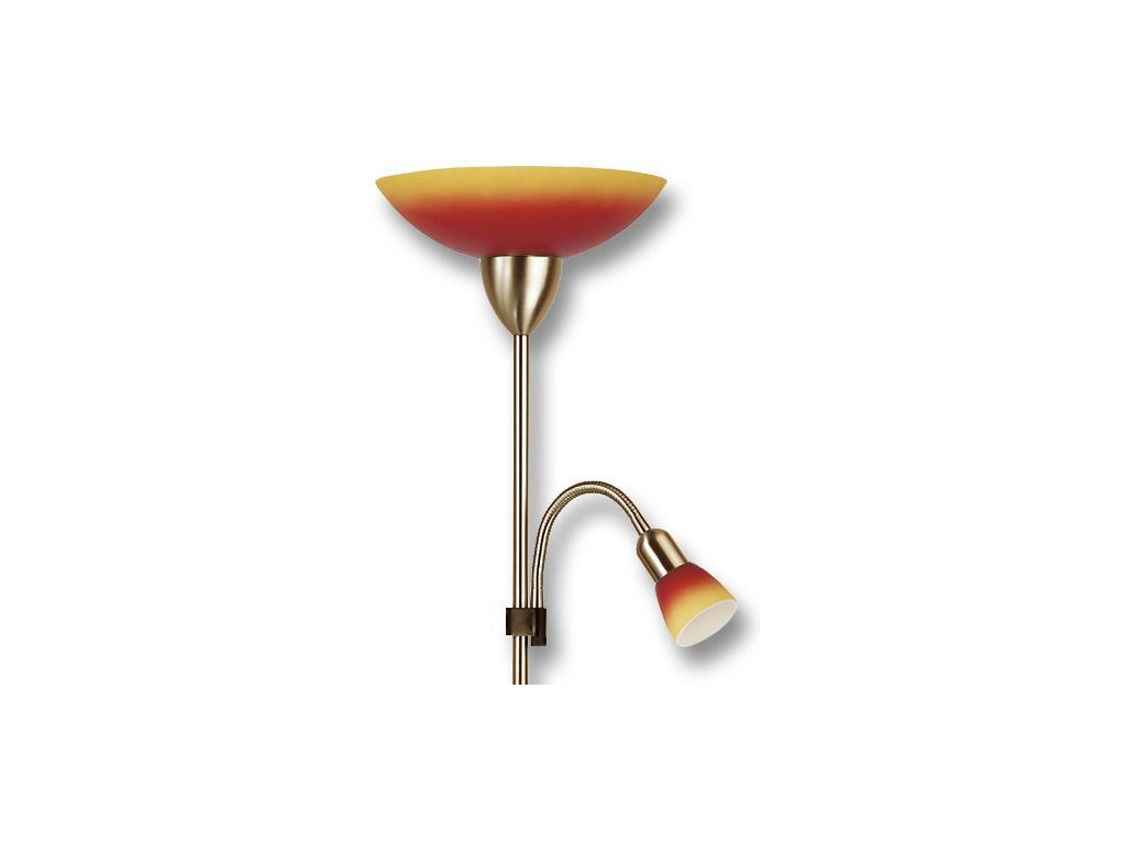 | Cena zahrnuje: | Lampa stojací E27/100WsE14/40W červ a oranž antik mosaz |
