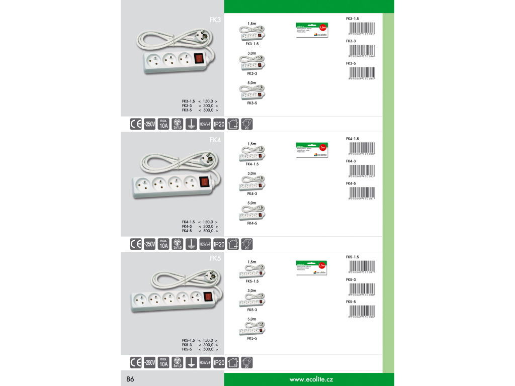 | Cena zahrnuje: | Prodl. přívodl 3m, 4zásuvky s vypínačem |