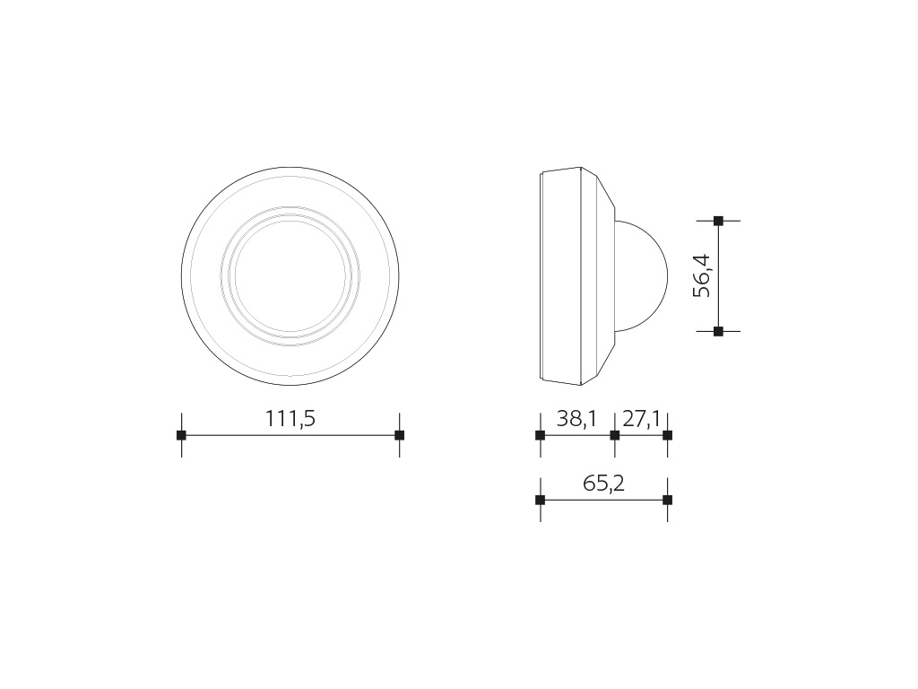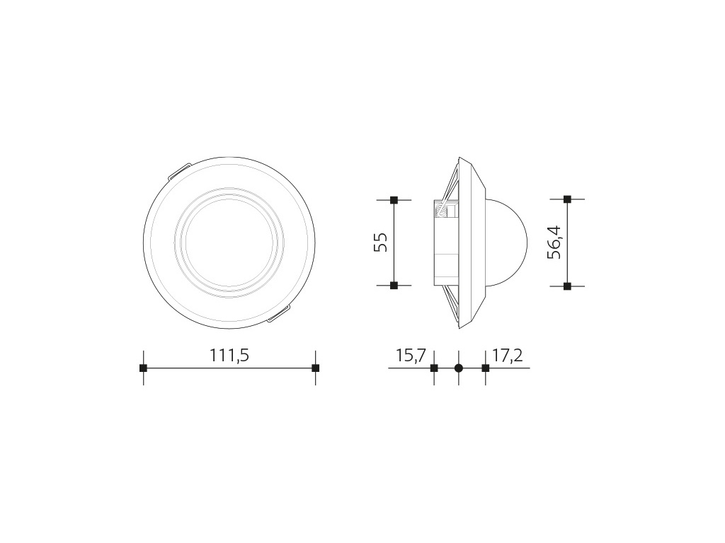 PIR senzor s pohybovým čidlem snímající okolí v detekčním úhlu 360°. Maximální dosah je 10m. Možnost vestavné i přisazené instalace.