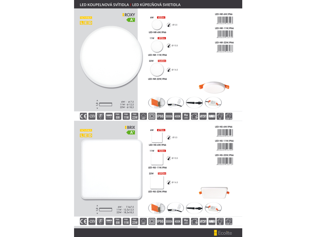 | Cena zahrnuje: | SMD kruh 12,5cm,11W,4000K,IP66,890lm |