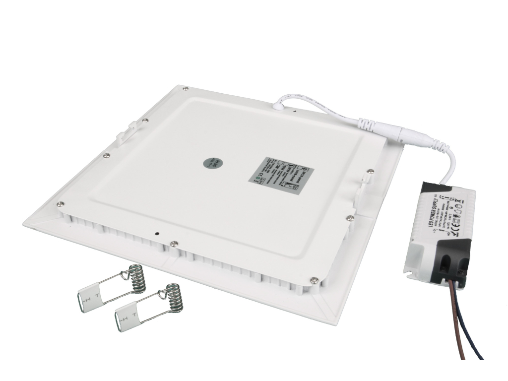 | Jak nainstalovat: | Připravte montážní otvor.<br />Připojte správné barevné vodiče ke zdroji.<br />Připojte panel ke zdroji pomocí konektoru.<br />Zmáčkněte pružiny k sobě do horní polohy a vložte panel do připraveného otvoru.<br />Zkontrolujte. zda panel sedí se stropem. |